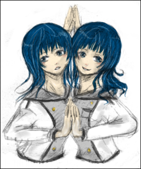髪がストレートの方が姉の流羽(るわ)、ウェーブの方が水羽(すわ)。